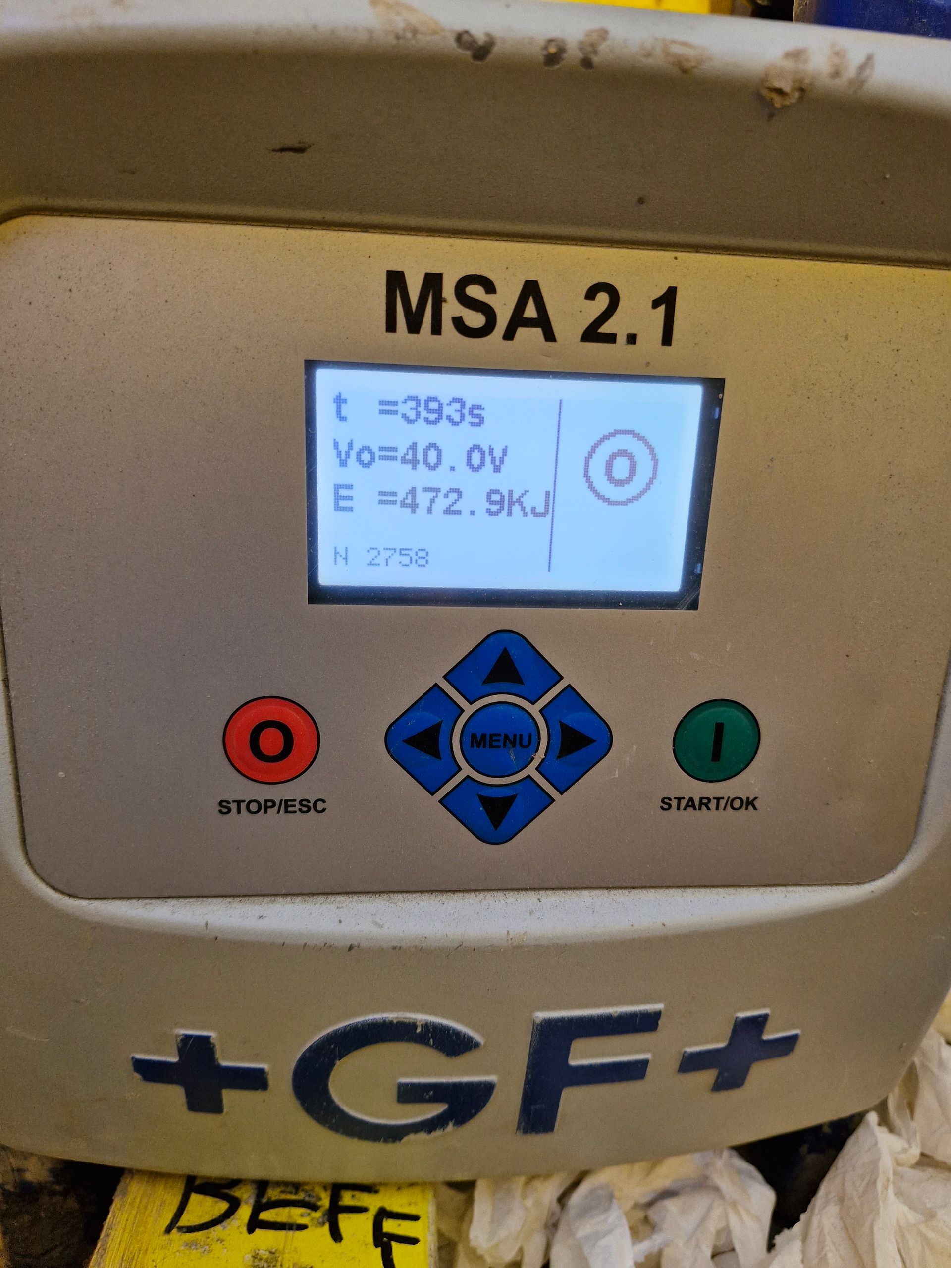 Het materiaal rondom de lasdraad gaat smelten en zet uit als gevolg van de warmte. Hierdoor wordt de ruimte tussen de buis en de fitting opgevuld waardoor de buis ook wordt verwarmd en in de laszone smelt. Door toenemende uitzetting van het materiaal tussen buis en fitting wordt de lasdruk opgevoerd en ontstaat een goede verbinding.